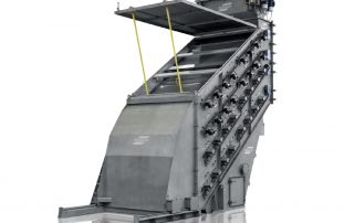 A high-frequency knocker shaft movement throws the screening material off the screen mesh at a 90° angle – the inclination of the mesh enables the screening material to be transported over the screen. Robust electromagnets operate outside the screen housing, transmitting the vibrations directly into the screen cloth via swinging axes.